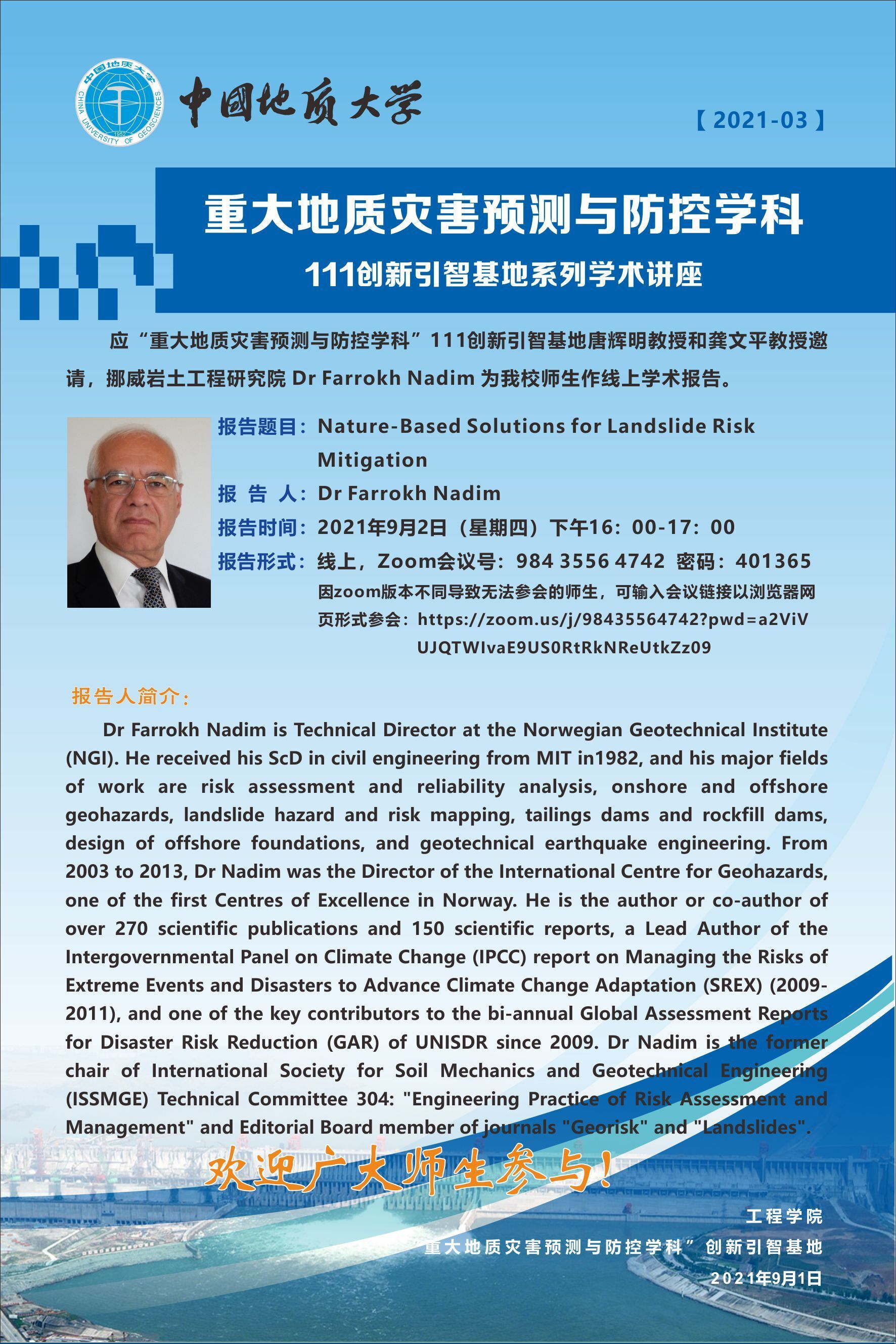 重大地质灾害预测与防控学科---111创新引智基地系列学术讲座(3)
