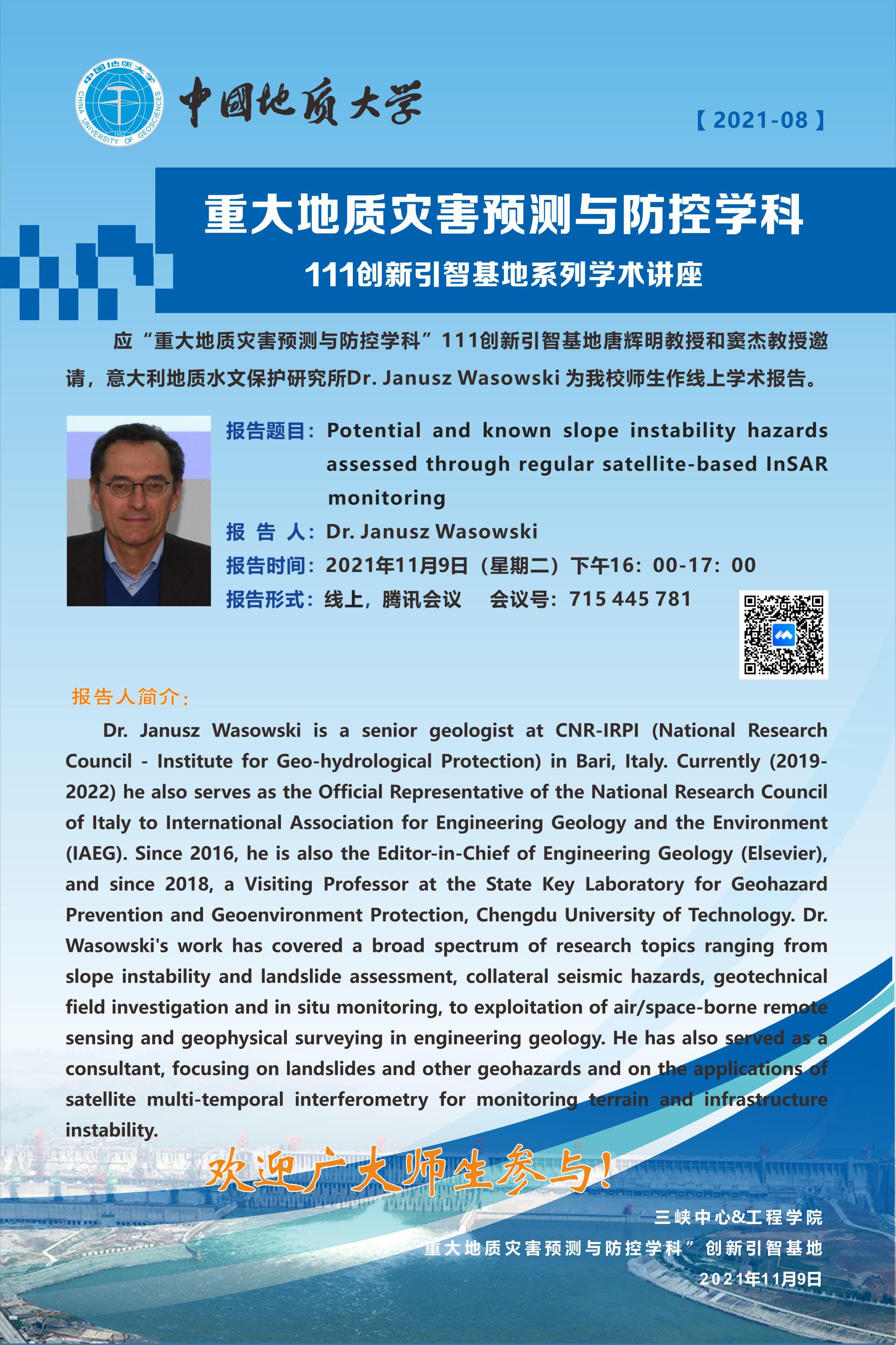 重大地质灾害预测与防控学科---111创新引智基地系列学术讲座(8)