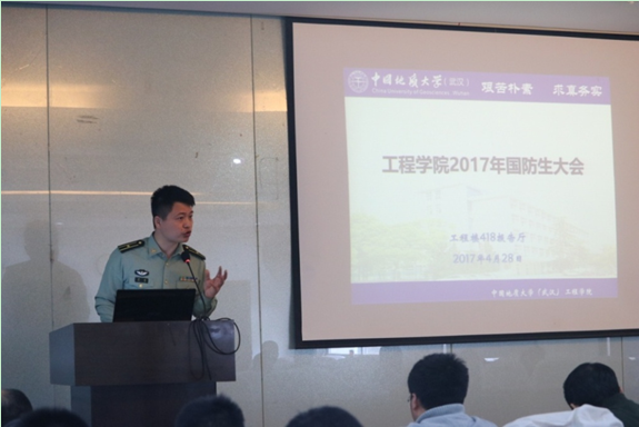 (通讯员:文新)4月28日上午,2017年国防生大会在工程楼418报告厅召开。公司党委副书记江广长,校国防办主任李凛,驻校选培办干事谭皓,辅导员丁继国、文新、王俊以及公司全体国防生参加了大会。