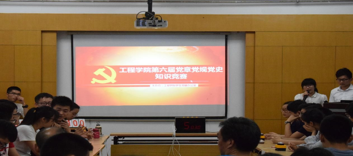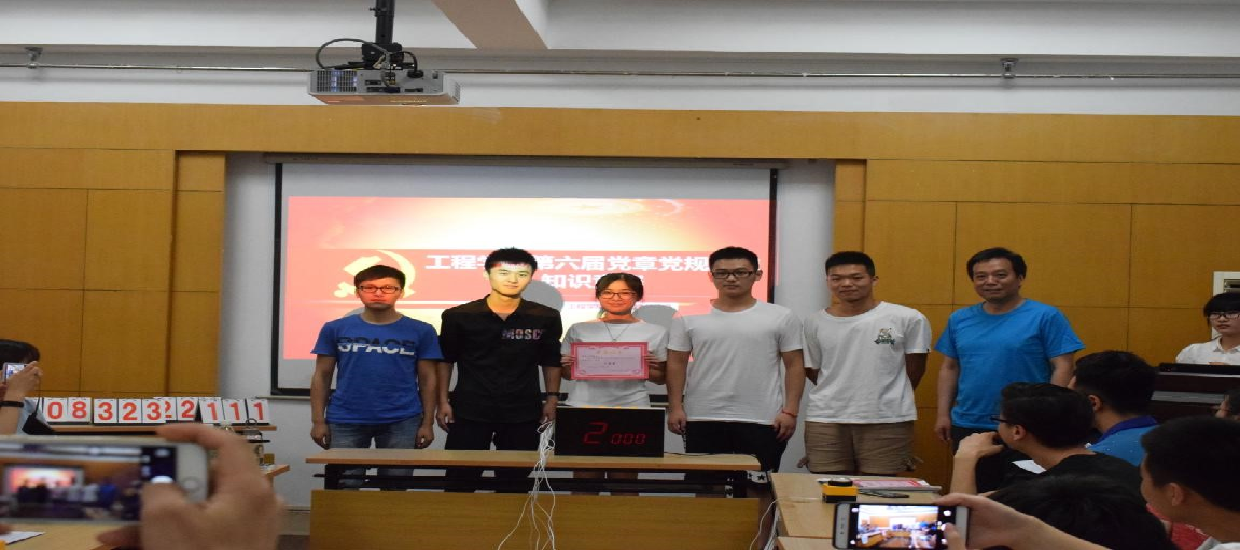(通讯员:文新)2017年5月14日晚7点,betway西汉姆联平台第六届党章党规党史知识竞赛决赛在工程楼315报告厅举行,公司党委书记陈飞,公司党委副书记江广长,辅导员文新、王俊以及6支决赛队伍参加了比赛。
