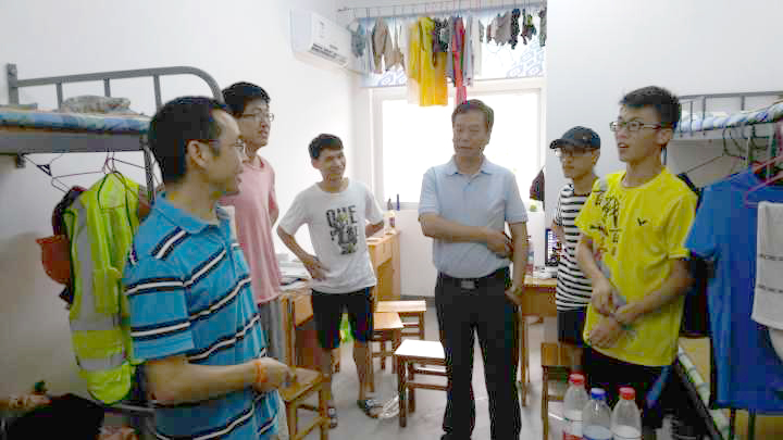 13日下午,陈飞一行到员工宿舍与同学们亲切交谈,询问同学们在实习基地的学习和生活状况,交流实习的收获和感受。陈飞勉励大家要珍惜野外实习的宝贵机会,发扬艰苦朴素、求真务实的校训精神,在实习中打下扎实基础,增强专业知识。在与老师们座谈中了解到,秭归近期为多雨天气,陈飞强调,各实习队要根据天气情况适时调整实习路线,避免雨后去有滑坡风险的危险路线,确保实习安全。