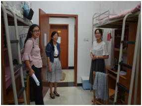倪晓阳和郭小玉前往63栋宿舍看望新生。在与女生的交谈中,倪晓阳说:“要做好迎接老员工活的准备,按照时间段分期做好学业规划,全力以赴,努力实现自己的大学目标”