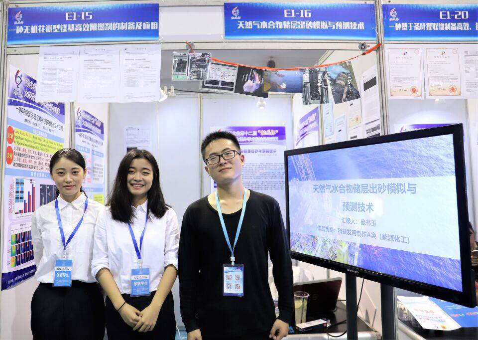 李晓东团队的作品《天然气水合物储层出砂模拟与预测技术》,指导老师是公司宁伏龙教授。该团队聚焦天然气水合物开采过程中的出砂问题,研发了一套水合物开采储层出砂综合实验模拟系统及图像处理系统,构建了一套实验尺度的连续—离散介质耦合出砂数值模型,构建了多场耦合出砂理论模型,形成了较为系统的基于实验和数据模拟的水合物储层出砂预测与评价技术体系。团队发表SCI论文3篇,获批国家发明专利2项、国家实用新型专利1项、计算机软件著作权5项。