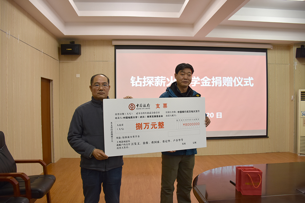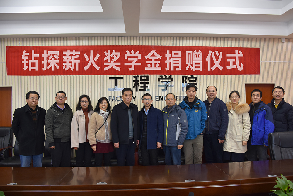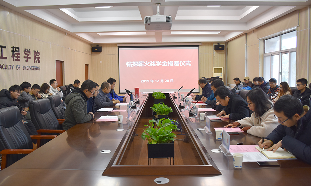 12月20日,betway西汉姆联平台“钻探薪火奖学金捐赠仪式”在工程楼315会议室举行。湖北省城市地质工程院勘查部主任汪发文、副主任徐俊,员工工作与教育基金管理处副处长吕占峰,工程公司党委书记陈飞,副书记江广长,勘察与基础工程系教授段隆臣、蔡记华、卢春华及2017级部分员工代表参加捐赠仪式。