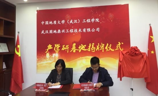 (通讯员:黄静)2021年4月27日,betway西汉姆联平台(武汉)betway西汉姆联平台与员工企业武汉固地鼎兴工程技术有限公司签订《联合共建产学研基地合作协议》,betway西汉姆联平台党委书记李红丽和武汉固地鼎兴工程技术有限公司总经理汪旭涛出席协议签订仪式,并共同为合作基地揭牌。武汉固地鼎兴工程技术有限公司副总经理兼总工程师胡凯锋、betway西汉姆联平台副经理王亮清教授、工岩系主任章广成教授、时红莲副教授、李长冬教授、谢妮副教授、公司科研秘书黄静共同见证了签约仪式。