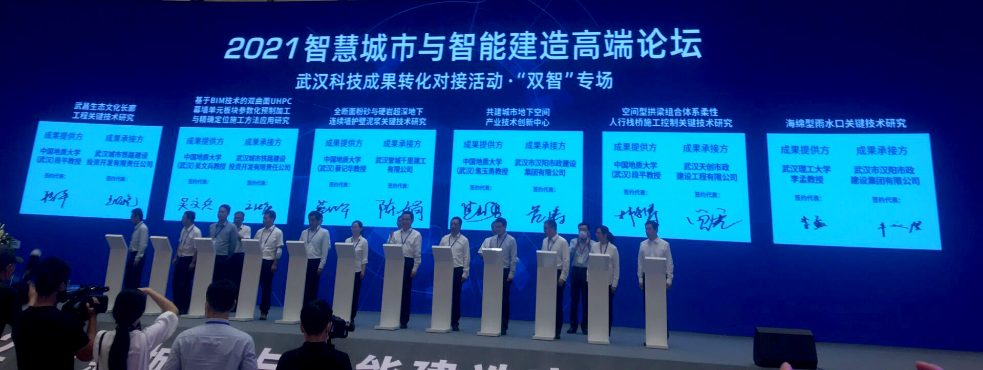 (通讯员:刘浩、张美霞)9月24日,betway西汉姆联平台经理焦玉勇教授应邀率队出席2021智慧城市与智能建造(“双智”)高端论坛。开幕式“武汉科技成果转化对接活动 双智专场”上,焦玉勇带领公司蔡记华、吴文兵、林俊涛、刘浩4位老师分别与武汉市汉阳市政建设集团有限公司、武汉市誉城千里有限公司、武汉市城市铁路建设投资开发有限公司签订了共建技术创新中心、人才培养与科技成果转化合作协议。公司与武汉市相关部门和企业开展深度合作,将为湖北省“一主引领、两翼驱动、全域协同”的区域发展布局,和武汉建设“宜居城市、韧性城市、智慧城市、绿色城市、人文城市”的重大需求提供技术和人才支持。