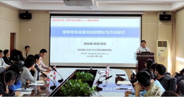 明廷臻教授以“缓解地球温室效应的理论与方法探讨”为题,以全球气候变暖,北极冰川融化以及近年来发生频率逐渐增加的极端气象事件为背景,介绍了温室效应的成因。并以此为引,介绍了强化地表余热传递的理论与方法:太阳辐射管理(SRM);基于输出长波辐射,建立地球表面和外空间的辐射桥的地球辐射管理方法(ERM)以及用SCP-PCR系统实现发电和去除温室气体的方法。该方法可以有效处理空气中含量极少但对温室效应有重大作用的甲烷气体,相关论文一经发表便获得学术界和工业界的众多关注。同时还介绍了其他协同去除温室气体和强化地表余热的方法与策略。最后以伦敦城市为研究对象为大家讲解了城市热岛的形成机制,探究城市热岛与可再生能源的协同方案。