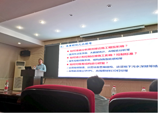 报告结束后,到场师生就城市轨道交通工程近接施工工程等问题与李忠超总工程师展开了广泛交流。李忠超总工程师就师生感兴趣和疑惑的问题与大家进行了深入探讨。与会师生均表示收获颇丰。最后,吴文兵教授对报告会进行了总结发言,感谢李忠超总工程师为公司师生带来了一场资料详实、图文并茂、深入浅出的高水平报告,并希望与会师生深入学习与思考。