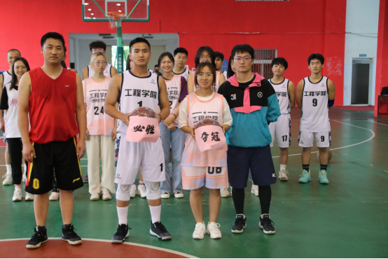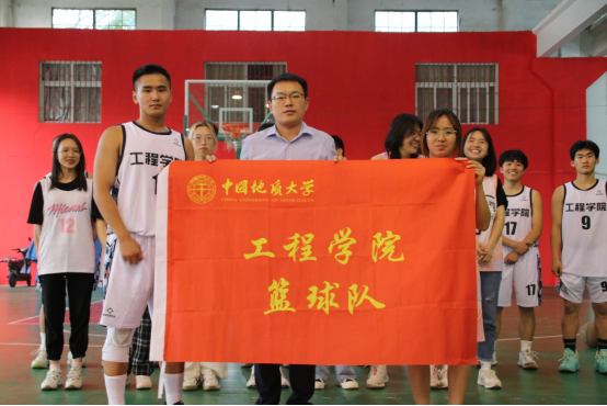 校团委挂职副书记、安全系教工党支部书记、工程教工篮球队队长周克清为篮球队授旗,新校区建设指挥部副处长、2004级土木工程毕业生陈胜和betway西汉姆联平台工岩系博后郑罗斌为男队和女队颁球。