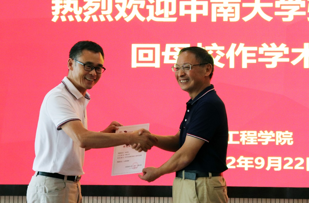 窦斌副经理为张绍和教授颁发工程文化论坛特邀报告证书