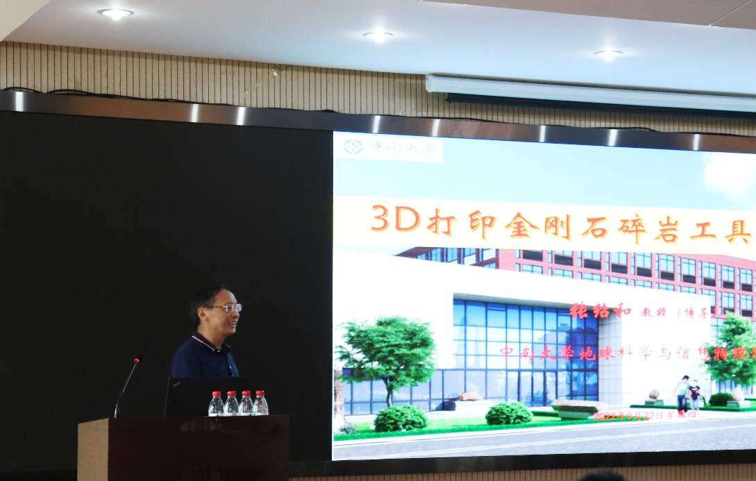 张绍和教授作了题为“3D打印金刚石碎岩工具研究进展”的学术报告。他首先介绍了3D打印技术的产生及发展历程,引出该技术在金刚石工具领域的应用;分析总结了3D打印金刚石工具的制备方法,以及当下各种制备方法的优缺点;解读了3D打印金刚石地质钻头的研究过程,着重剖析了3D打印金刚石超薄片的制备技术和全过程的难点要点;详细阐述了3D打印金刚石复合片及钻头的技术路线和最新研究成果。最后,张绍和教授在SLS、EBM等高能束3D打印金刚石工具、间接3D打印制造金刚石工具和3D打印金刚石工具三个方向对未来金刚石工具制备提出了展望。
