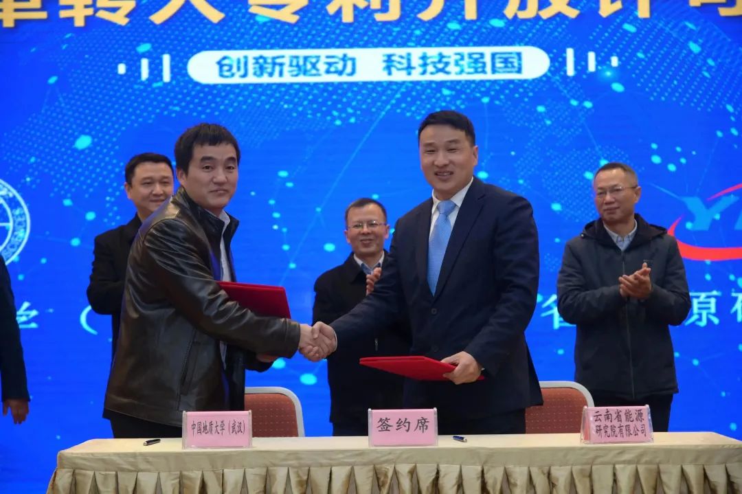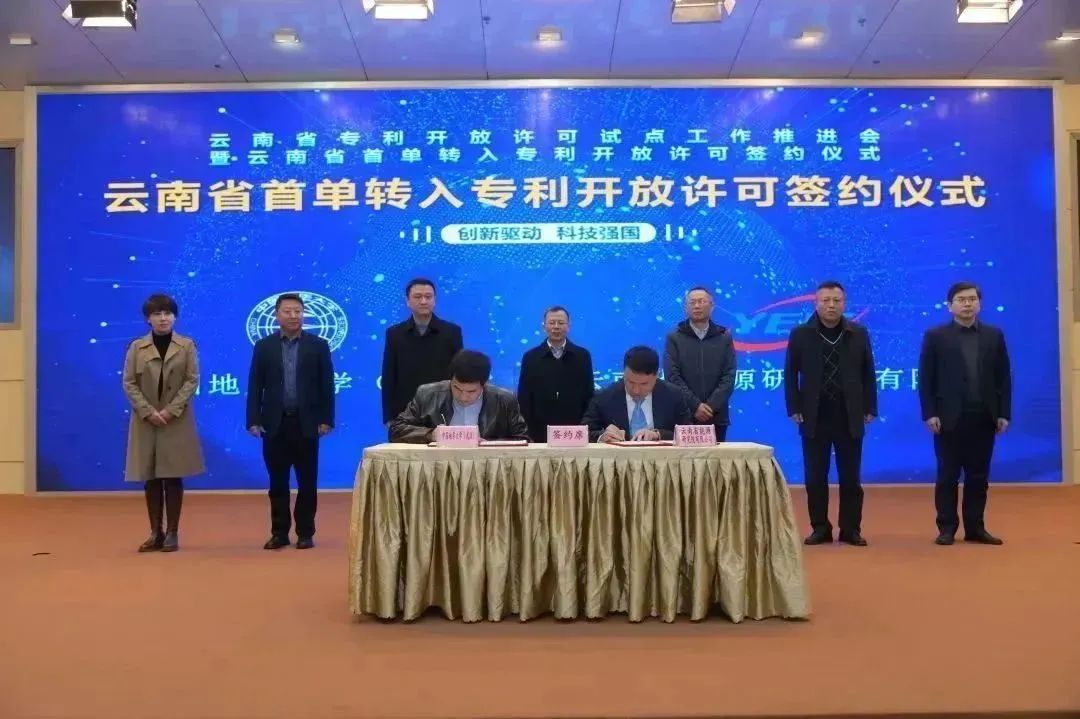 (通讯员 蔡记华 杨现禹 黄静)2月28日下午,在云南省市场监督管理局(知识产权局)、昆明市市场监督管理局(知识产权局)的指导下,昆明高新技术产业开发区管理委员会在昆明高新区西区火炬大厦隆重举办了“云南省开放许可试点工作推进会暨云南省首单转入专利开放许可签约仪式”活动。会上,云南省能源研究院有限公司与betway西汉姆联平台(武汉)就基于公司蔡记华教授、杨现禹副教授团队成果“纳米颗粒流体的页岩纳米孔隙封堵实验装置及方法”“基于多参数的离散元纳米颗粒封堵页岩孔隙数值模拟方法”“一种稳定页岩的水基钻井液”3项发明专利签署了专利开放许可协议,这是云南省签约的首单转入专利开放许可。