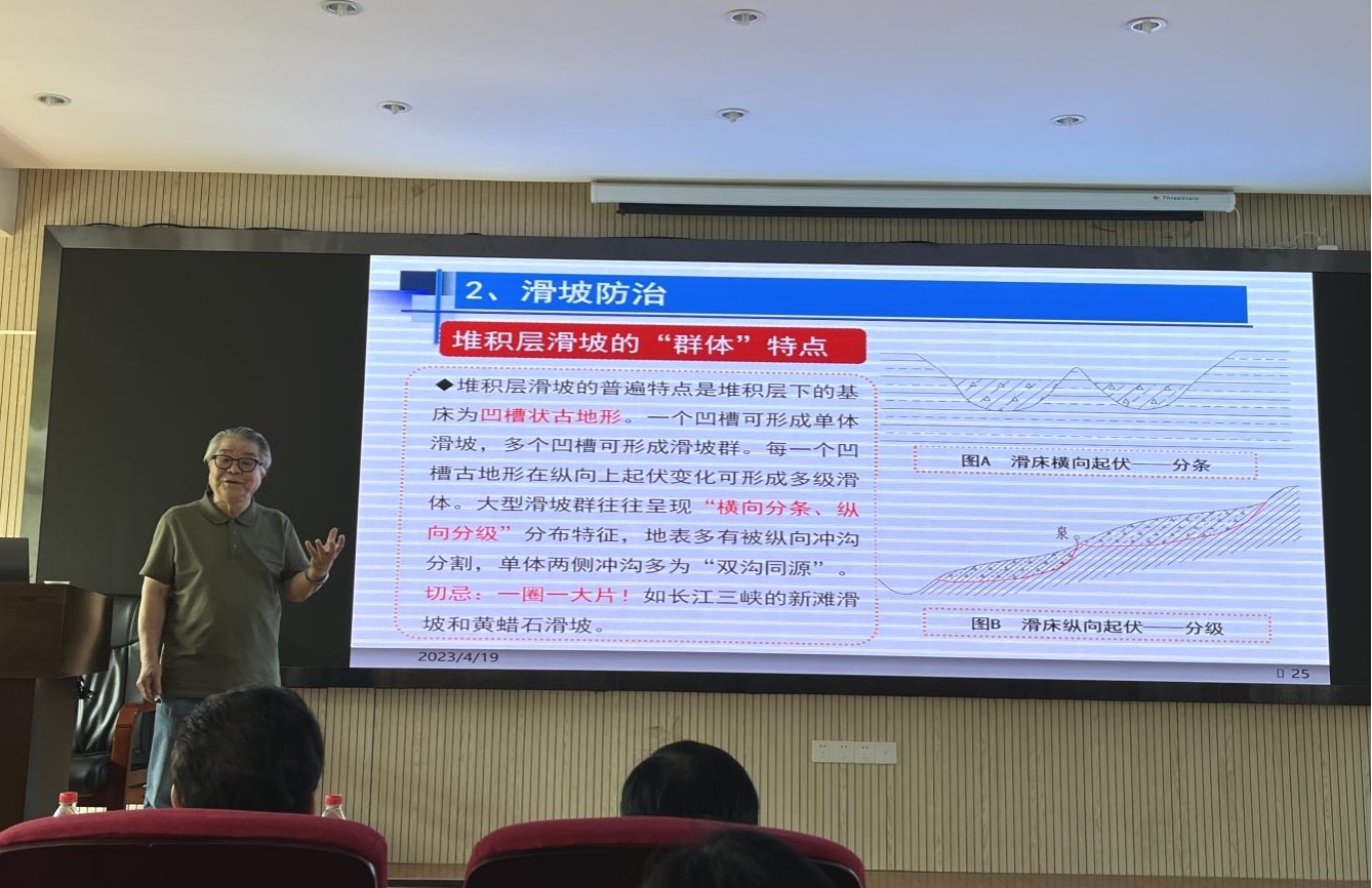 活动还邀请了中冶武勘工程技术有限公司副总经理占仲国教授级高级工程师、武汉市勘察设计有限公司副总经理、总工程师官善友教授级高级工程师、中国一冶集团有限公司副总工程师王平教授级高级工程师、湖北建鄂勘察设计审查咨询有限公司向艳正高职高级工程师、中南勘察设计院集团有限公司副总工程师马郧正高职高级工程师、长江勘测规划设计研究有限责任公司所长助理徐复兴正高职高级工程师、中国科公司武汉岩土力学研究所江权研究员、武汉理工大学芮瑞教授、武汉华太岩土工程有限公司吴西臣正高职高级工程师等莅临现场。betway西汉姆联平台唐辉明教授、李红丽书记、章广成教授、徐光黎教授、贾洪彪教授、葛云峰副教授、周佳庆特任教授等150多名师生在现场聆听了报告。
