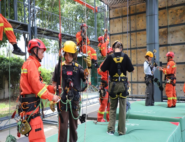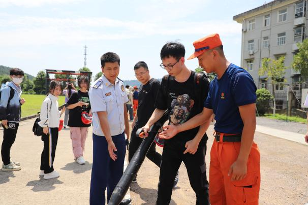 重温入党誓词后,055211和055212班全体员工在四大队消防官兵的指导下,开展了消防应急实习实训,四大队指战员带领师生参观了大队房宿、荣誉室,现场展示了部分先进消防装备的使用方法,指导员工开展了训练演习、消防设备实操训练、绳锁救援训练等活动。安全工程系教师与四大队指战员开展了消防技术和装备的交流和探讨。
