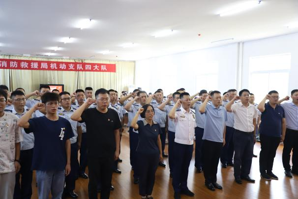 联合主题党日活动由国家消防救援局机动支队四大队党委书记、政治教导员王晨庚主持,国家消防救援局机动支队政治部副主任兼干部处处长贾文宇,四大队副政治教导员洪建中,九中队党支部书记、政治指导员顿建,十中队党支部书记、政治指导员武凡,十中队党支部中队长刘万兵,国家消防救援局机动支队指战员100人参会。