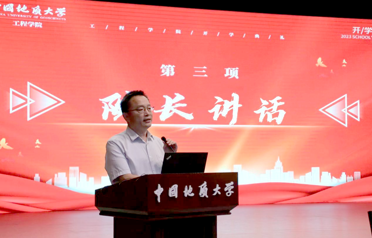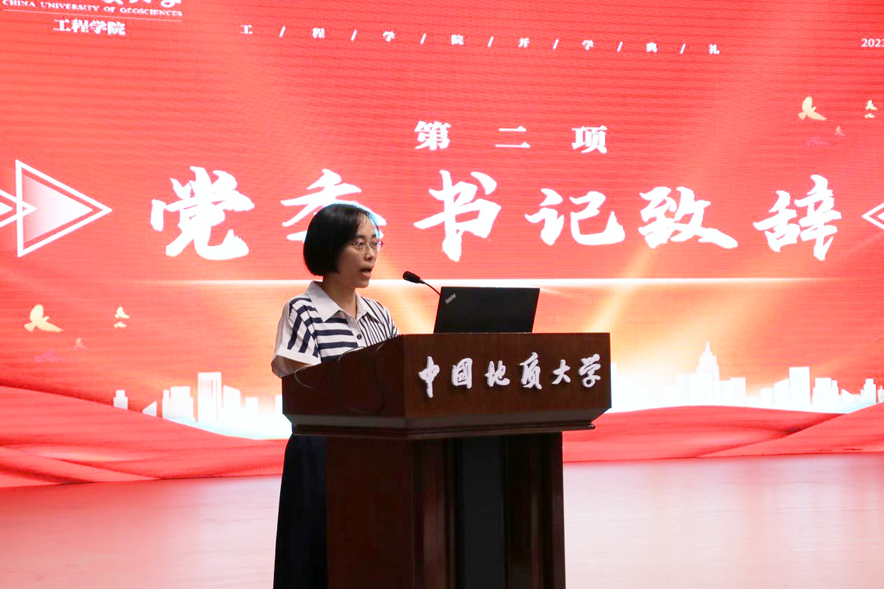 工程公司党委书记李红丽致辞。李书记首先代表全院师生员工对加入betway西汉姆联平台的860名新成员致以热烈的欢迎,祝福同学们选择了betway西汉姆联平台这个温暖而又奋进的大家庭。她指出,当代老员工正值云程发轫、万里可期的青春韶华,要全面学习公司的辉煌历史,深刻感受公司的使命担当,铭记院训深意,争做时代栋梁。要“明理”,即明辨是非,通晓道理,要明白做人之理、为学之理、尊法之理;要“尚实”,即崇尚务实作风,要在实处用力,在知行合一上下功夫;要“拓新”,即开拓创新,要面向世界科技前沿、面向经济主战场、面向国家重大需求、面向人民生命健康,解放思想,开拓创新,与时俱进;要“砺行”,即砥砺前行,在攻坚克难中磨砺心性,坚守初心,锻造本领,成长成才。她勉励同学们以院训精神为指引,树牢远大志向、矢志不懈奋斗,努力学习,潜心科研,乐观开朗,积极向上,做堪当时代大任的新时代地大工程人,为建设社会主义现代化国家做出属于青年一代的贡献。