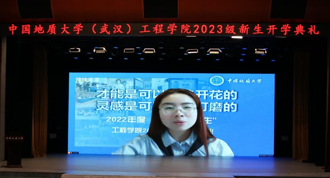 2023届毕业生、现清华大学工程物理系研究生翟丹阳作为优秀本科生代表,通过视频连线的方式为2023级新生送来祝福与期盼。她鼓励同学们,要将树立崇高理想与坚持脚踏实地结合起来,将抓好课堂学习与用好课余时间结合起来,将学好课本知识与参加科研创新结合起来,将规划老员工涯与铺垫职业生涯结合起来,明确目标、躬耕实践,把握机遇、迎接挑战,掌控航向,做老员工活的主宰;怀揣热爱,奔赴下一场山海!