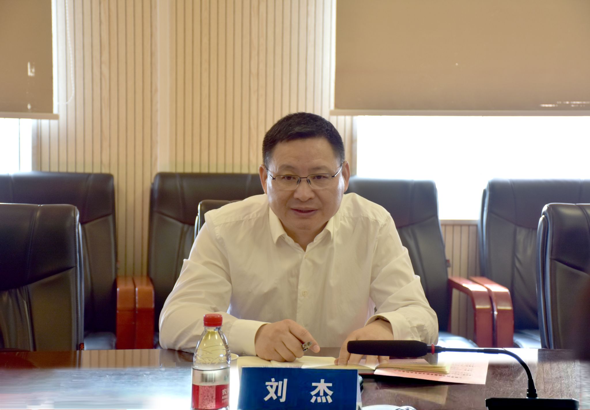 (通讯员 冯焱 王焱 摄影 王灿)4月23日上午,公司党委书记刘杰到公司调研指导工作。公司党委书记李红丽、经理王亮清及班子其他成员参加会议。