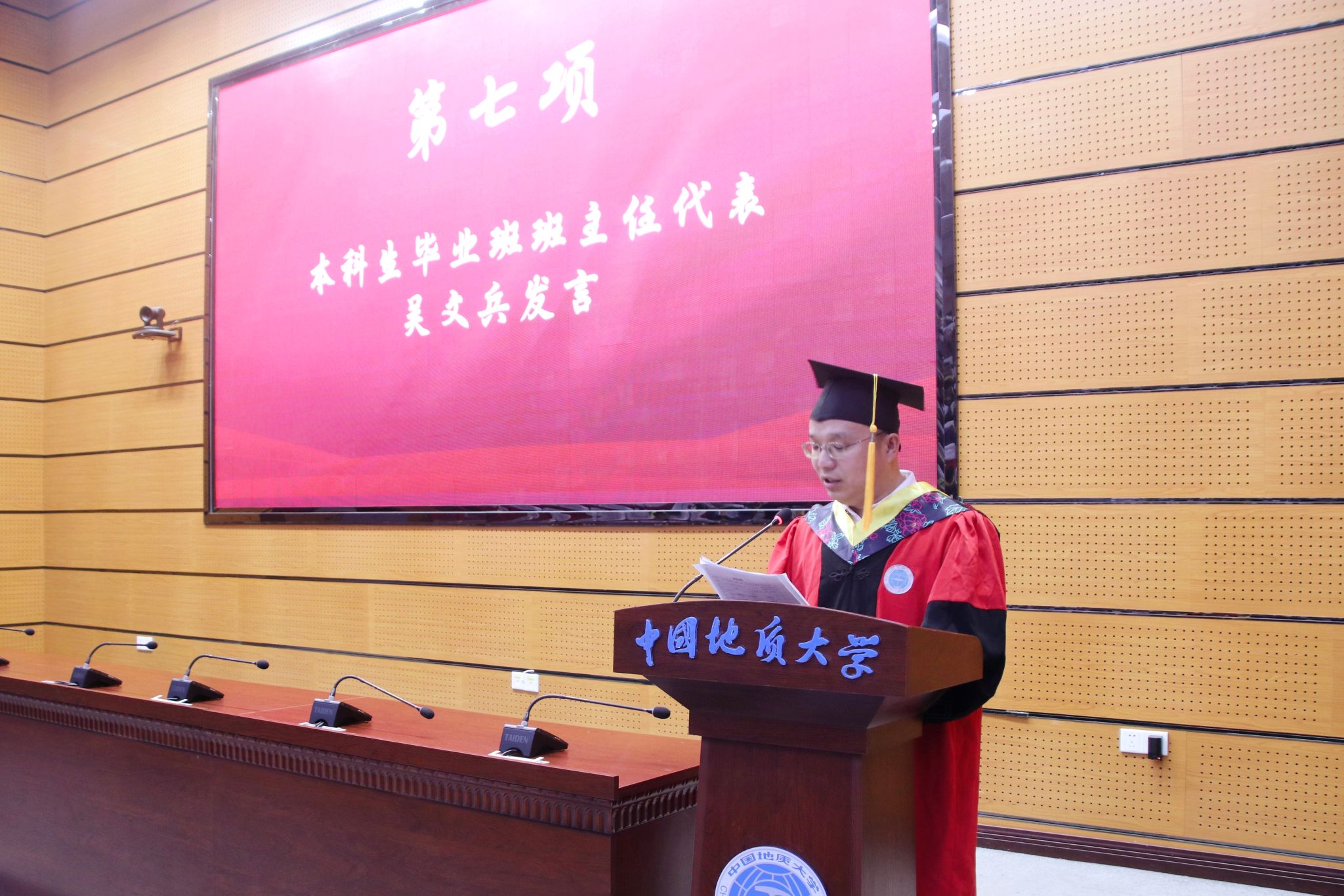 研究生导师代表周克清发言。他向广大毕业生提出殷切期许:一是永葆对大地的深厚情怀,坚守工程人服务国家建设的初心;二是恪守职业良知,涵养浩然正气,做德才兼备的栋梁;三是勇立时代潮头,敢于突破,驱动创新变革;四是胸怀“国之大者”,自觉担当时代赋予的重任。
