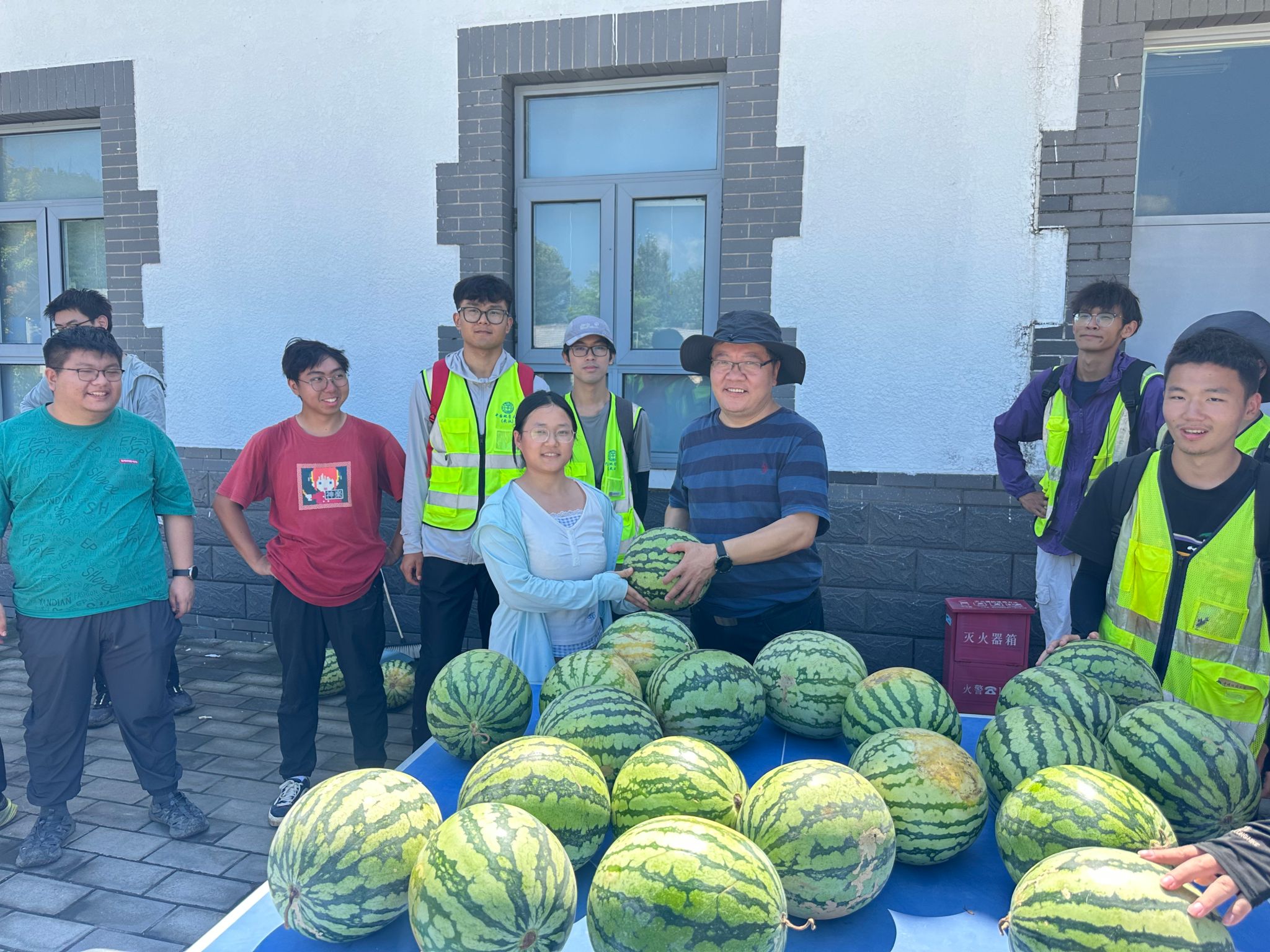 8月10日下午,王亮清一行前往教师公寓、员工宿舍看望慰问实习师生。在员工宿舍前,公司领导为实习师生发放防暑降温物资,详细了解实习期间生活保障情况。王亮清在交流中鼓励同学们:“实习既是专业能力的淬炼场,也是意志品质的试金石,希望大家珍惜实习机会,在实习中收获成长。”高晓东提醒道:“近期持续高温,要科学调整野外实习时间,切实做好防暑降温措施。”