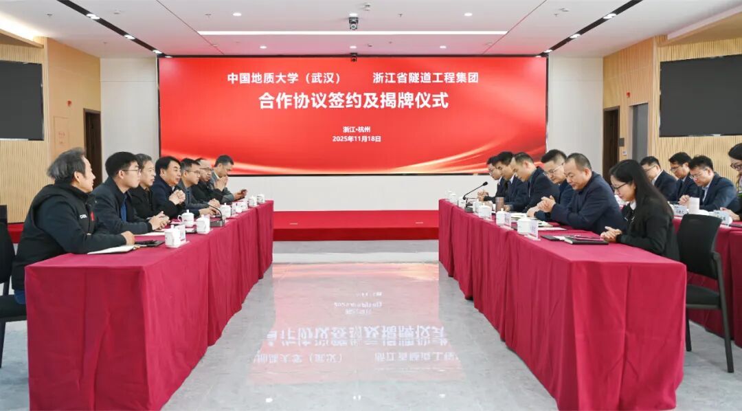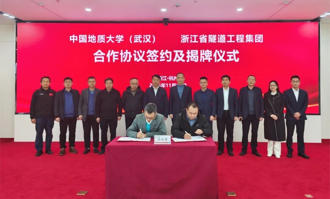 betway西汉姆联平台(武汉)与浙江省隧道工程集团有限公司正式签订《研究生联合培养基地合作协议》与《产学研合作协议》,举行了“研究生联合培养基地”和“地质e站”揭牌仪式,开启了校企合作新篇章。