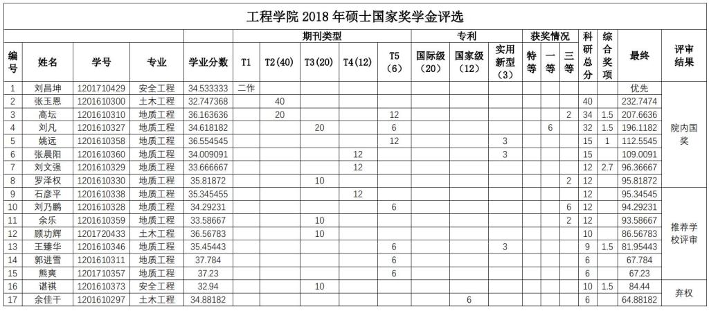 经个人申报,公司研究生国家奖学金评审委员会秘书处资格审查,公司研究生国家奖学金评审委员会于2018年9月29日下午组织通过资格审查的申报者(其中博士研究生14人,硕士研究生17人)进行答辩评审,公司研究生国家奖学金监审委员会全程监督。会议确定了刘昌坤等8名硕士研究生,刘浩等4名博士研究生为betway西汉姆联平台2018 年研究生国奖学金候选人。现将betway西汉姆联平台 2018 年国家奖学金候选人公示(见下表)。