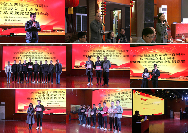 2019年3月29日晚18:30,betway西汉姆联平台“纪念五四运动一百周年·新中国成立七十周年暨2019年党章党规党史知识竞赛”复赛、决赛在东区教职工活动中心举行。工程公司党委书记陈飞、副书记江广长,公司党委组织部李雨竹,betway西汉姆联平台学工组辅导员丁继国、文新、王焱出席活动。