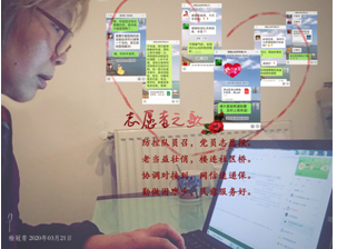 杨冠青同志现任工程公司党委组织委员,党建工作卓有成效。她在疫情发展的高峰(2月份),克服各方亲人患重疾的重重困难,并不顾个人年龄较大和容易被感染的事实,挺身而出主动报名参加公司社区志愿者,协助公司和社区传递中央和地方关于疫情防控的重要信息,发放物资,照顾老人,做好本职工作和志愿者工作,积极宣传报道疫情期间先进事迹,传递正能量,稳定了小区居民情绪,保障了他们的正常生活,守护了平安。