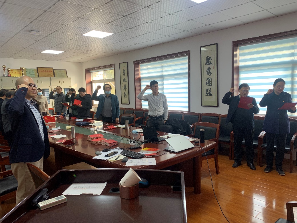 最后,葛云峰同志为11月份过“政治生日”的胡新丽、吴益平、贾洪彪和王亮清四位同志发放了纪念卡。吴益平和贾洪彪同志带领大家重温了入党誓词,贾洪彪同志结合个人入党23年以来的经历谈了党组织对自身发展的激励与提升。胡新丽、王亮清等同志就党支部建设、系室建设和野外实习等事宜进行了热烈的发言讨论,葛云峰同志介绍了支部近期的工作计划。会后,所有党员缴纳了11月的党费。